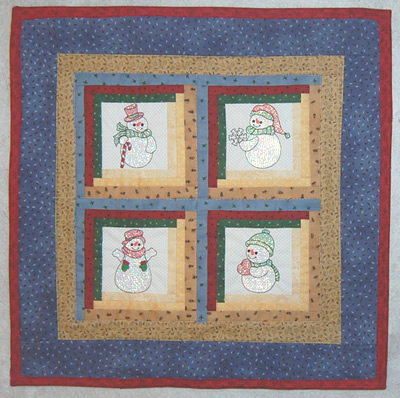In the Hoop Log Cabin Blocks with Mylar Snowmen