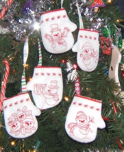 Quick Mittens - Snowmen Redwork