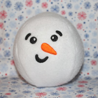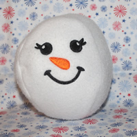 There are 12 snowman faces and all fit the 4x4 hoop. The finished snowballs are about 4 inches high - just right for indoor horseplay, stocking stuffers or even a baby gift. |